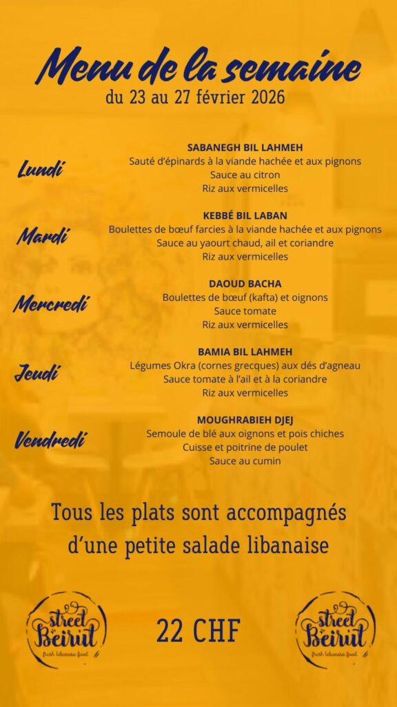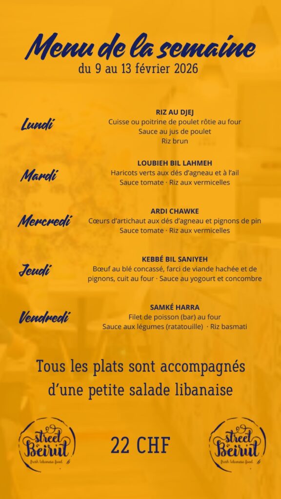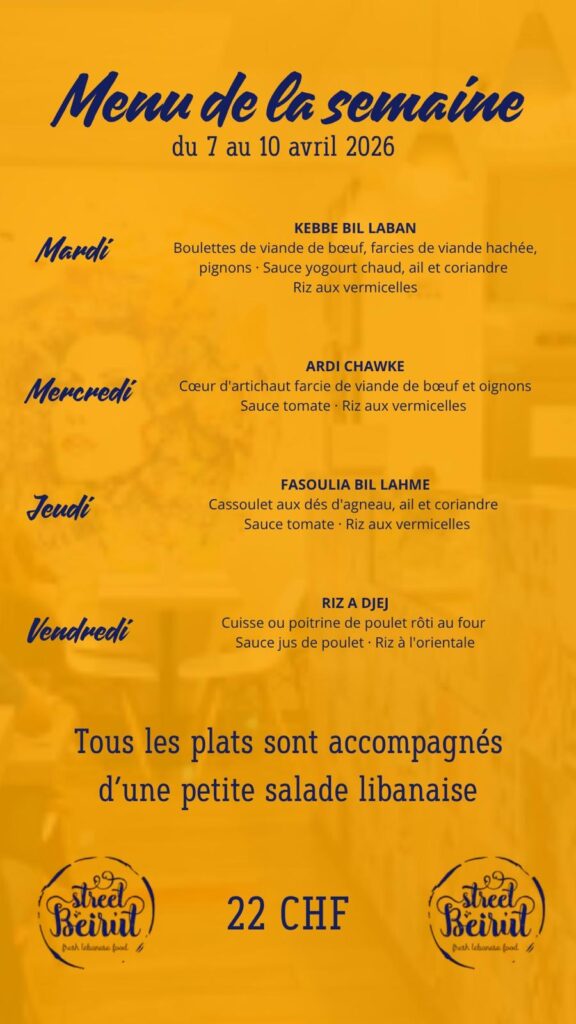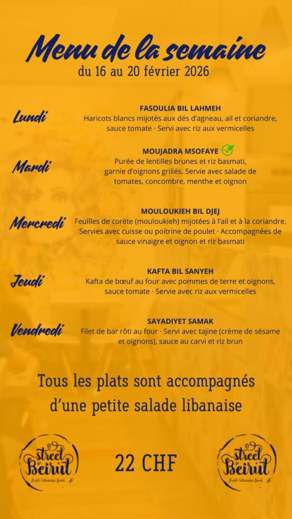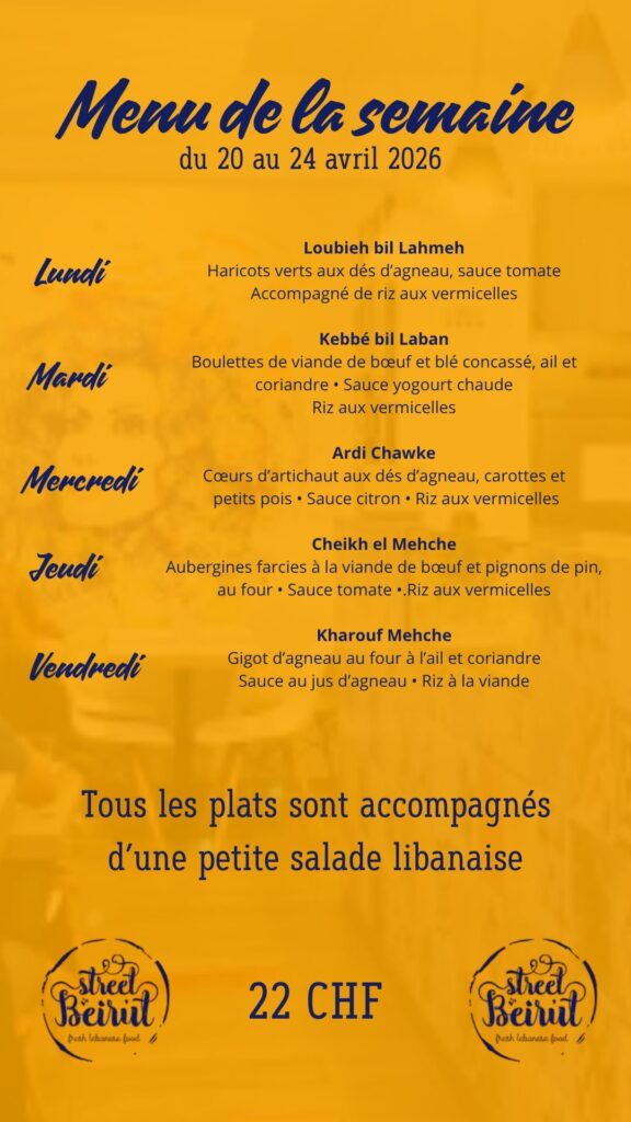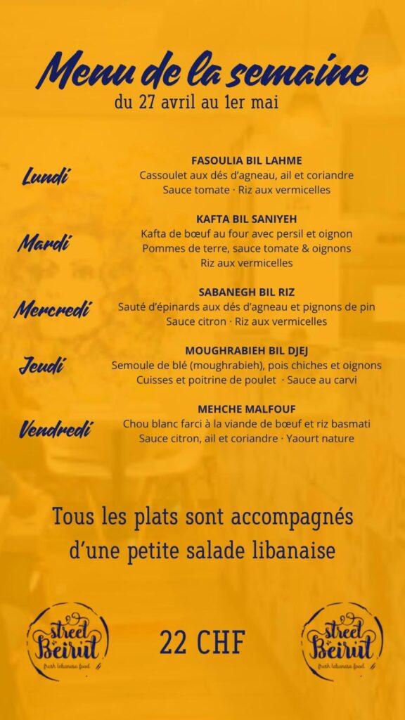 Street Beirut est un restaurant libanais à service rapide et décontracté, dont l’objectif est de faire découvrir la véritable expérience Beyrouthine en Suisse. Notre cuisine est ouverte afin que vous puissiez nous voir préparer les repas les plus savoureux avec les ingrédients les plus frais sous vos yeux.